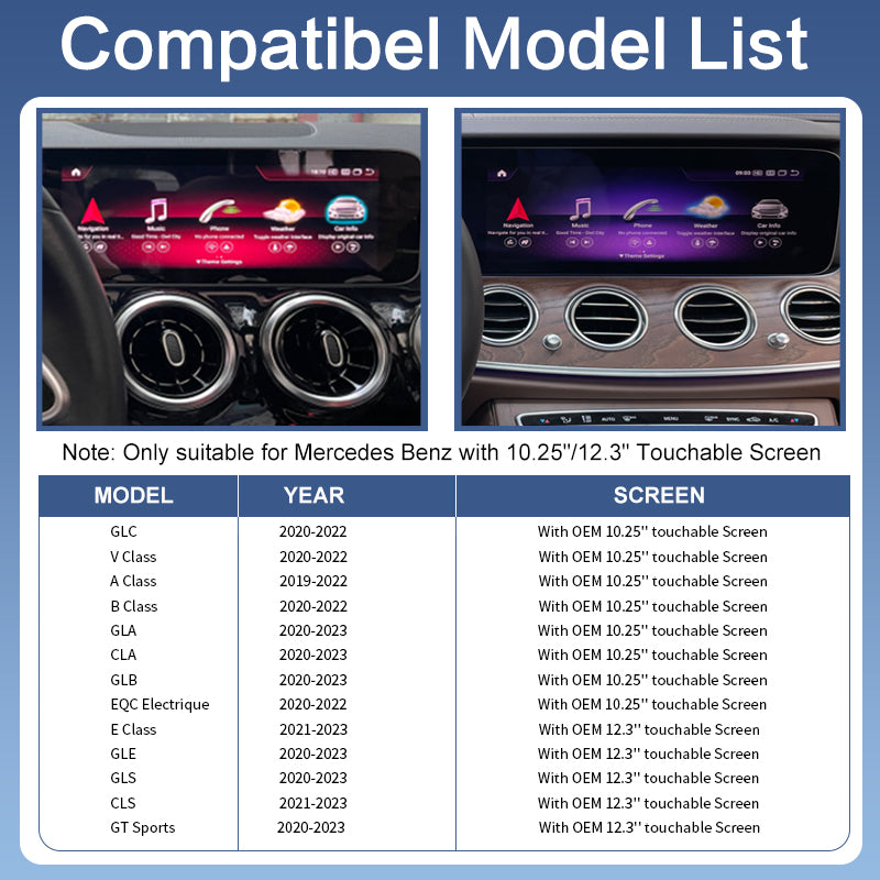 - 12.3" Screen: E-Class, GLE, GLS, CLS, GT (2020-2023)